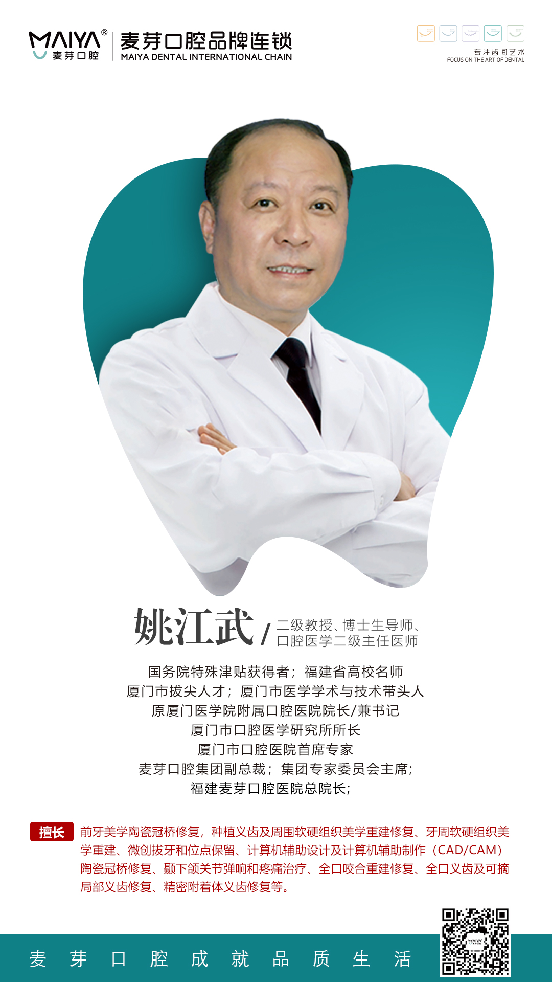 2019年7月17日,厦门麦芽口腔医院正式成立,在国务院特殊津贴获得者、原厦门口腔医院院长 姚江武教授 带领下,厦门麦芽口腔医院组建了一支以博硕专家为核心的 博士专家团
