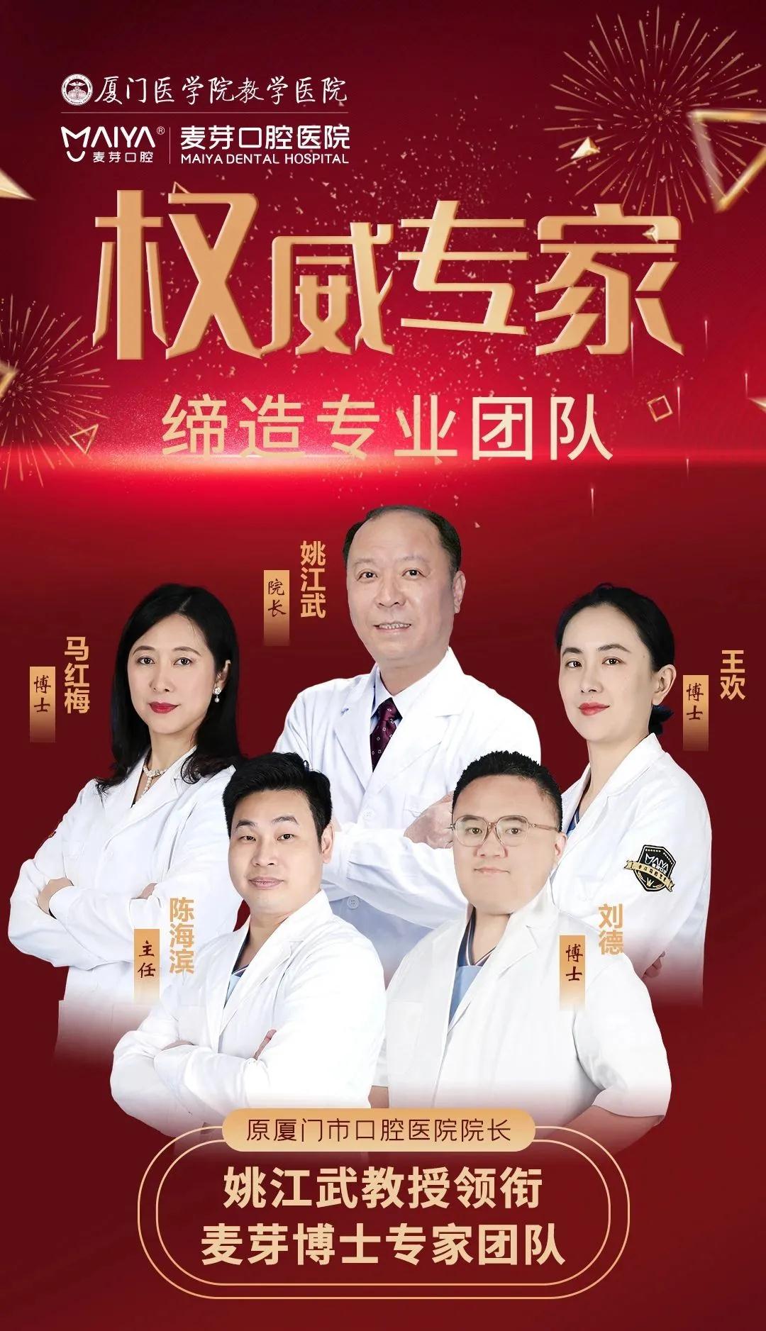 麦芽口腔拥有以原厦门市口腔医院院长姚江武教授领衔的专家团队;中国医科大学、日本九州大学双博士——马红梅博士领衔的修复专家团队;中国第四军医大学王欢博士领衔的正畸专家团队,数字化种植中心陈海滨主任领衔的种植团队,还有一位前不久加入麦芽口腔的刘德博士,刘博是四川大学华西口腔医学博士,擅长半口/全口常规和即刻种植、上颌窦内/外提升术以及复杂种植牙手术。结合一批优秀的骨干医生,和专业的医护人员,共同守护鹭岛口腔健康与灿烂笑容。