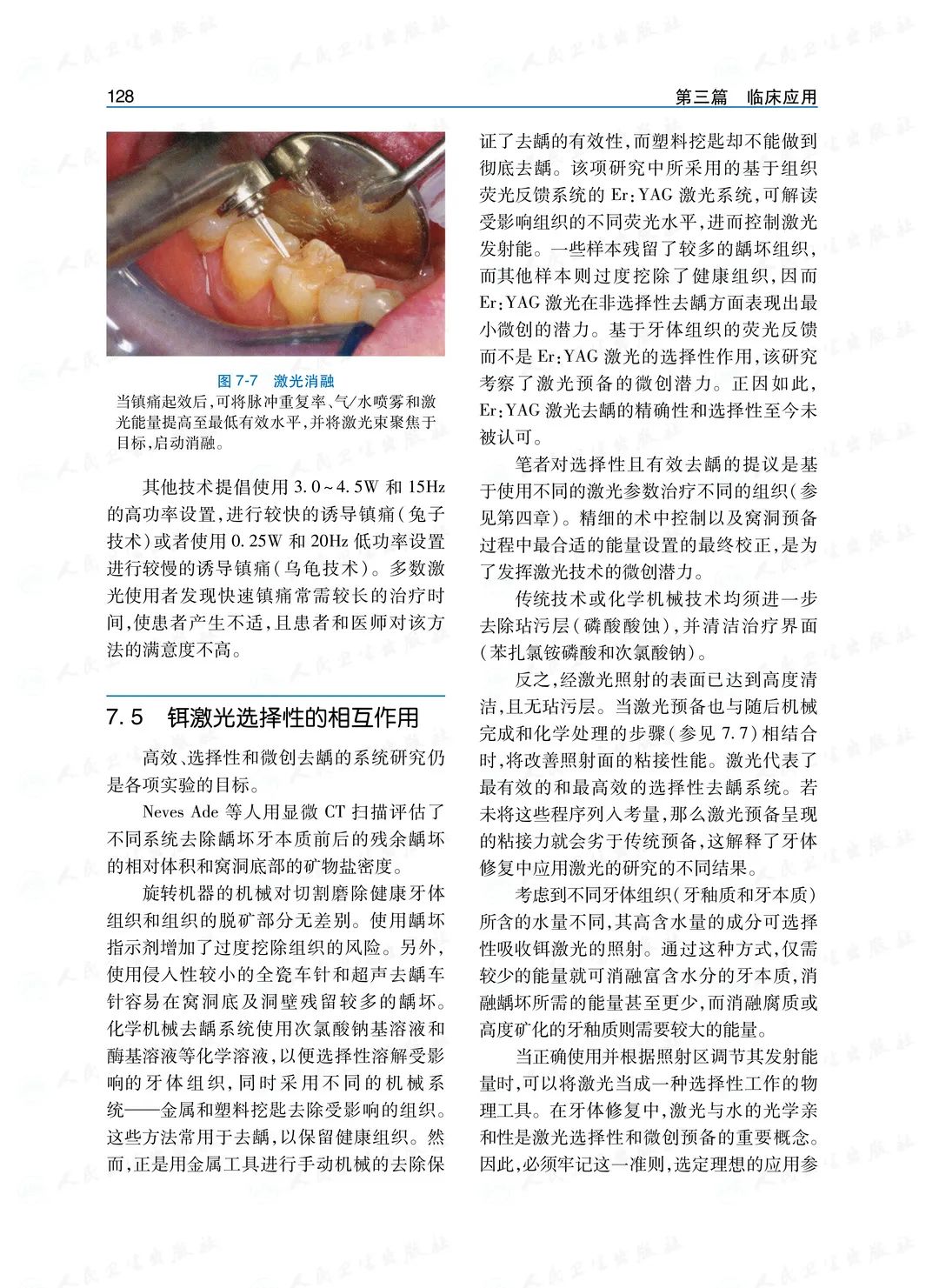 第二篇详尽地叙述了激光牙体修复学的基础,如激光物理学、激光与牙体硬组织相互作用的机制、粘接剂与铒激光处理牙釉质和牙本质;